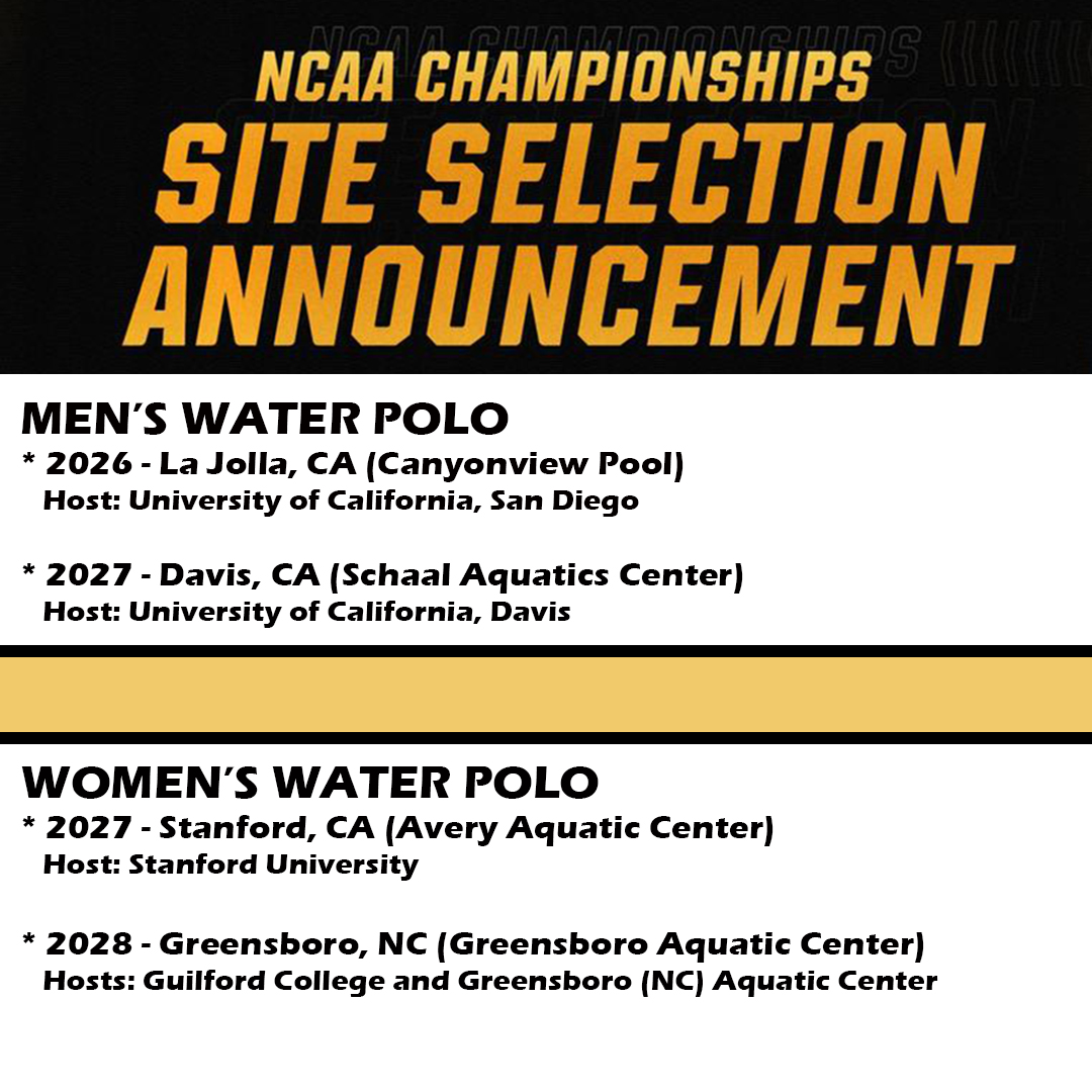 In 2026, the University of California-San Diego will host the men’s championship at Canyonview Pool in La Jolla, Calif.