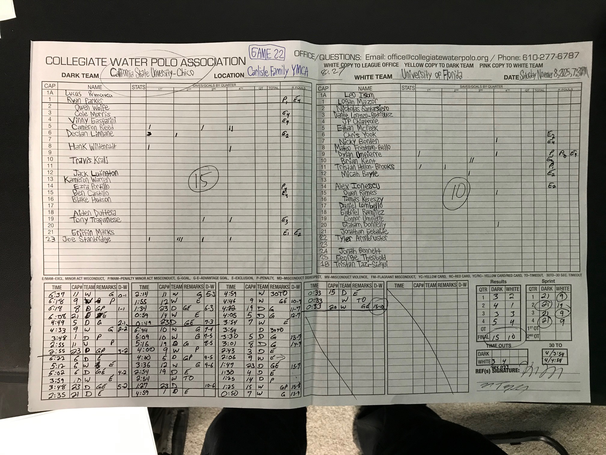 Florida was unable to trim its deficit below three goals over the duration of the second half as both teams punched in trios of tallies in the third quarter prior to Chico State going ahead 15-7 with 1:47 left in the fourth quarter. Florida chipped away at its deficit to close within five goals prior to the concluding horn.