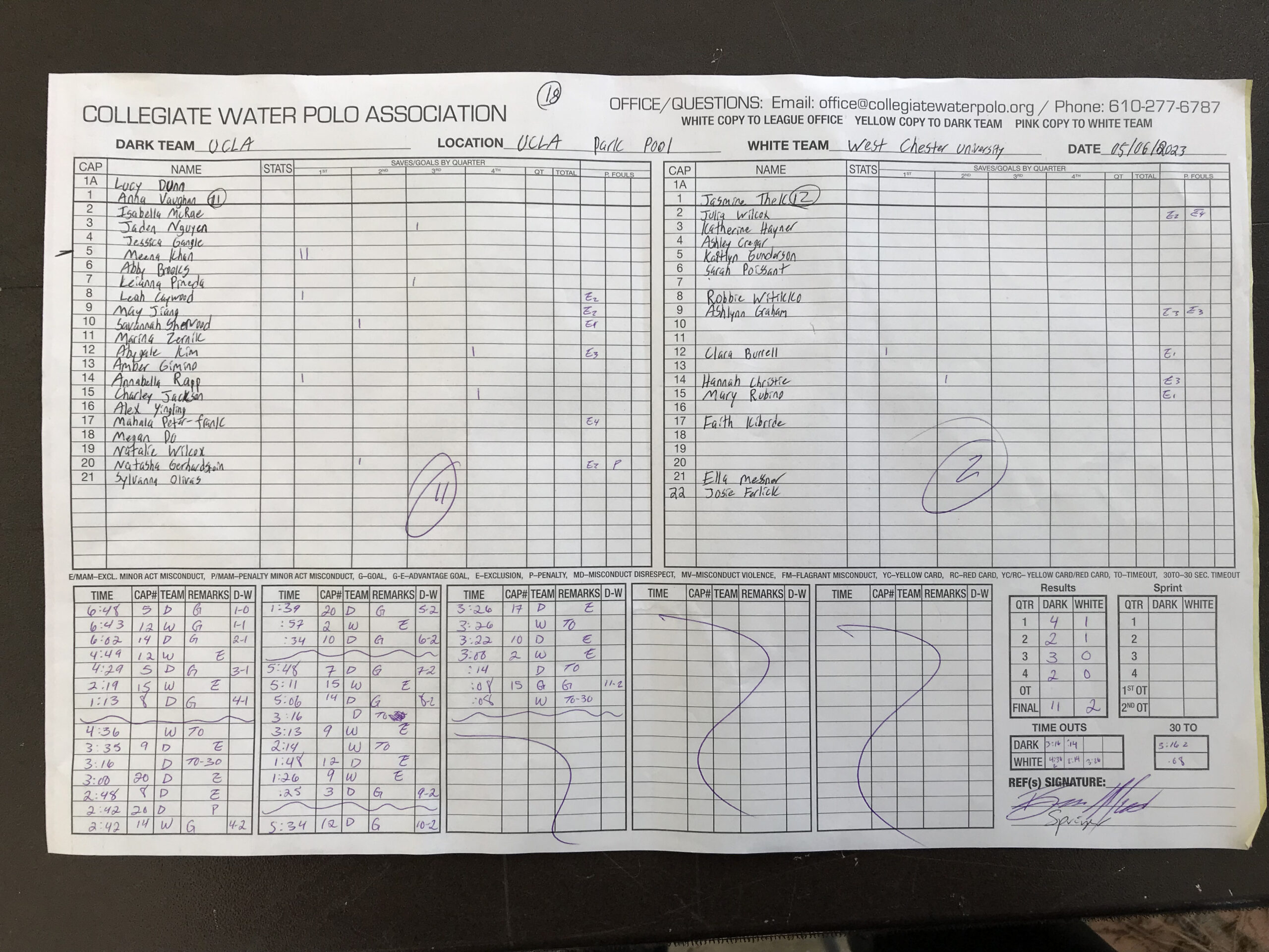 | Saves: | Colorado – Esme Stotland (3, 14 minutes), Sophie Simpson (2, 14 minutes) ; West Chester – Jasmine Thek (9) | |||||